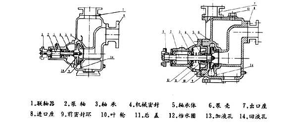 該自吸式離心泵是選用優(yōu)質(zhì)材料精制而成,密封采用硬質(zhì)合金機(jī)械密封,經(jīng)久耐用,吐出管路不需要安裝安全閥,吸入管路不需安裝底閥,因此簡化了管路系統(tǒng),又改善了勞動條件。